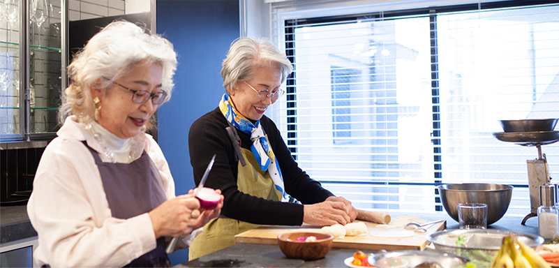 介護施設とは異なり、家庭的な雰囲気の中で入居者どうしが助け合いながら暮らすことができ、見守りや生活支援が付いていることで、毎日を安心して過ごせます。